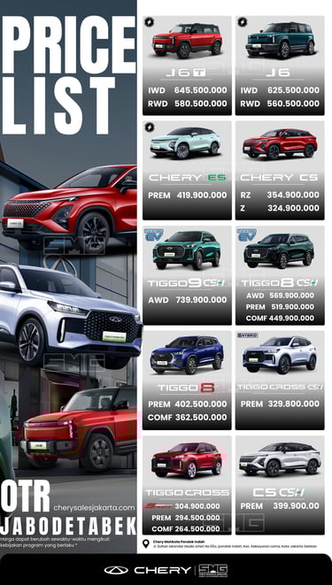 Sales resmi mobil Chery ICE, EV & Hybrid di Jakarta. Omoda, J6, dan Tiggo 8 tersedia dengan harga dan promo terbaru.